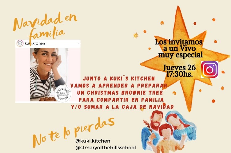 volver > 25Nov Navidad Solidaria - Christmas Brownie Tree Te invitamos a un vivo en donde Kuki Quel, ex alumna del colegio y gran cocinera nos enseñará a hacer un Christmas Brownie Tree para compartir con tu familia en Navidad o regalar volver >