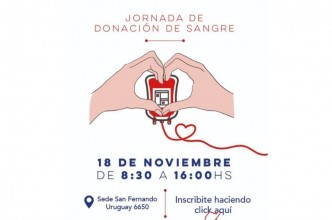 Donar Sangre es donar vida. El día 18 de Noviembre realizaremos una jornada de donación de sangre. Inscribite en el siguiente link: https://forms.gle/K3LAk5iGJXpJp4fh6