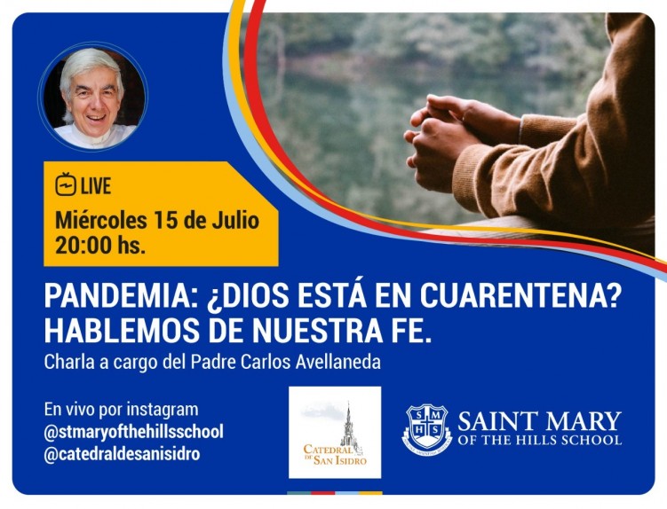 volver > 15Jul HOY Pandemia: ¿Dios está en cuarentena? Hablemos de Nuestra Fe El Padre Carlos Avellaneda nos invita a reflexionar. La charla será en nuestro instagram, te invitamos a sumarte @stmaryofthehillsschool volver >